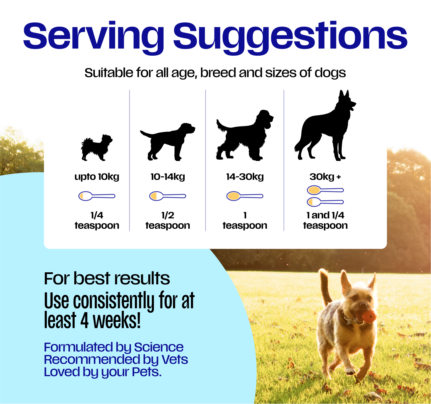 Full Directions are provided on the package, Keep Calm comes as a powder topper with a 5g scoop, meause the appopriate amount for your dogs weight (provided on bag) and sprinkle onto food daily. For best results use for at least 30 days.